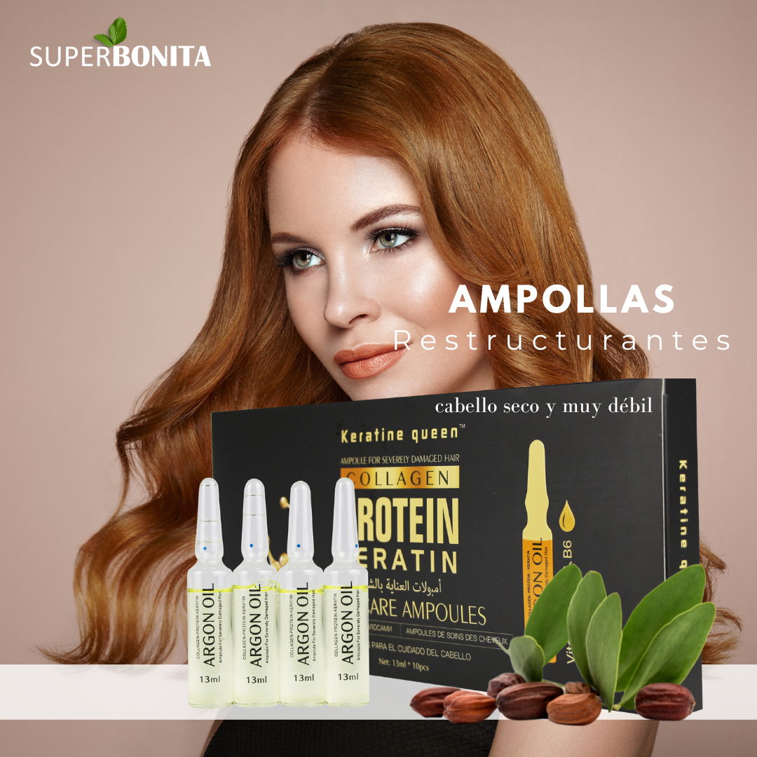 Ampolla para cabellos severamente dañados. Esta es la extracción de aceite de nuez marroquí natural, contiene rico aceite de nuez marroquí, contiene esencia de grano de fruta rica y súper concentrada + vitamina E, ácido graso, ácido linoleico, el precioso componente de cuidado del cabello.