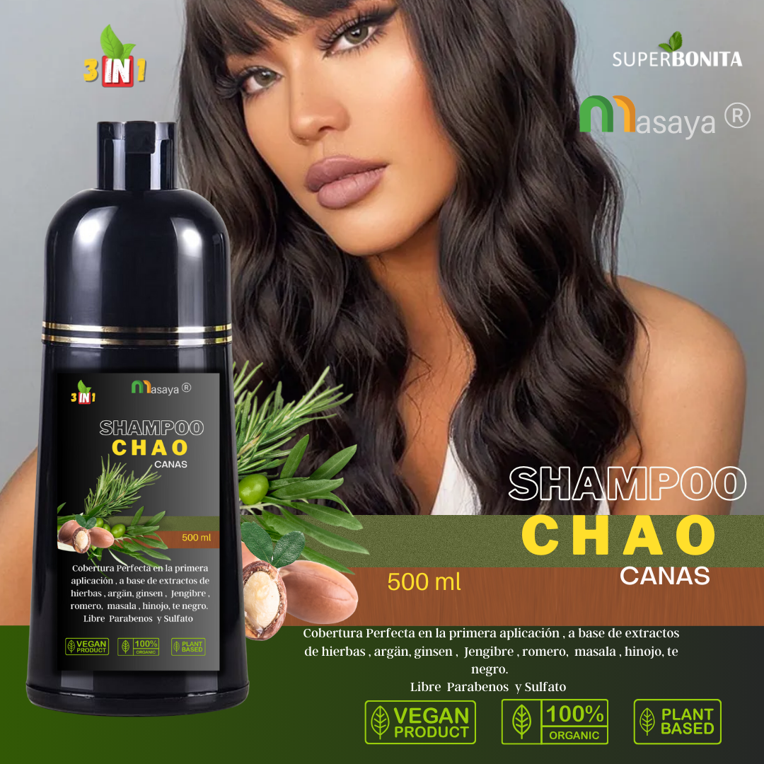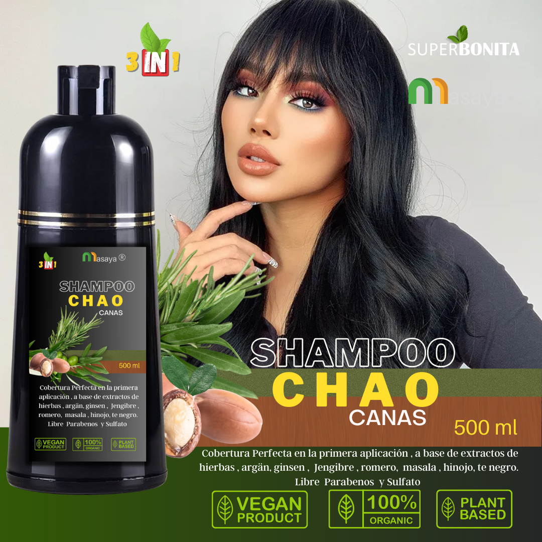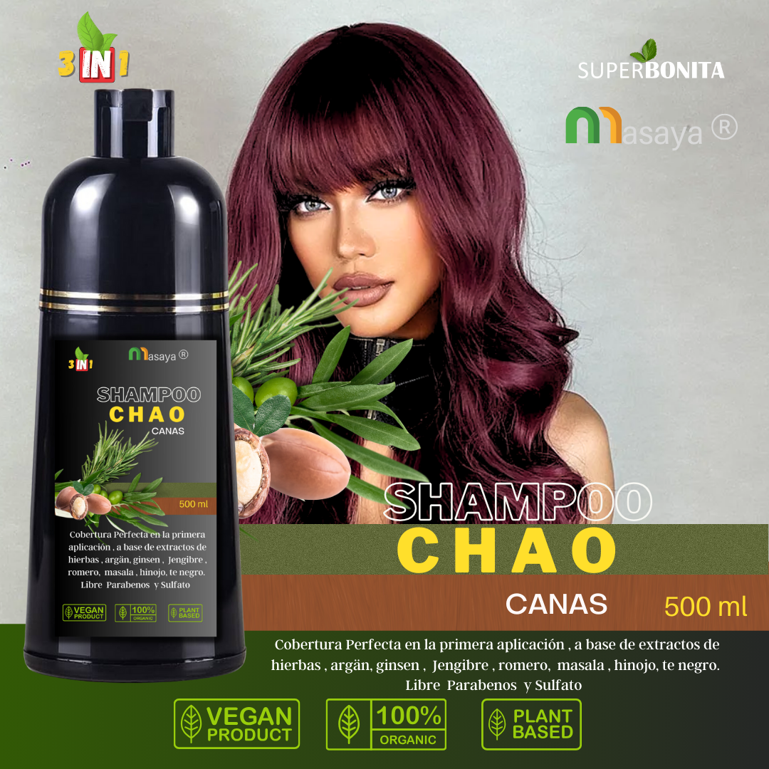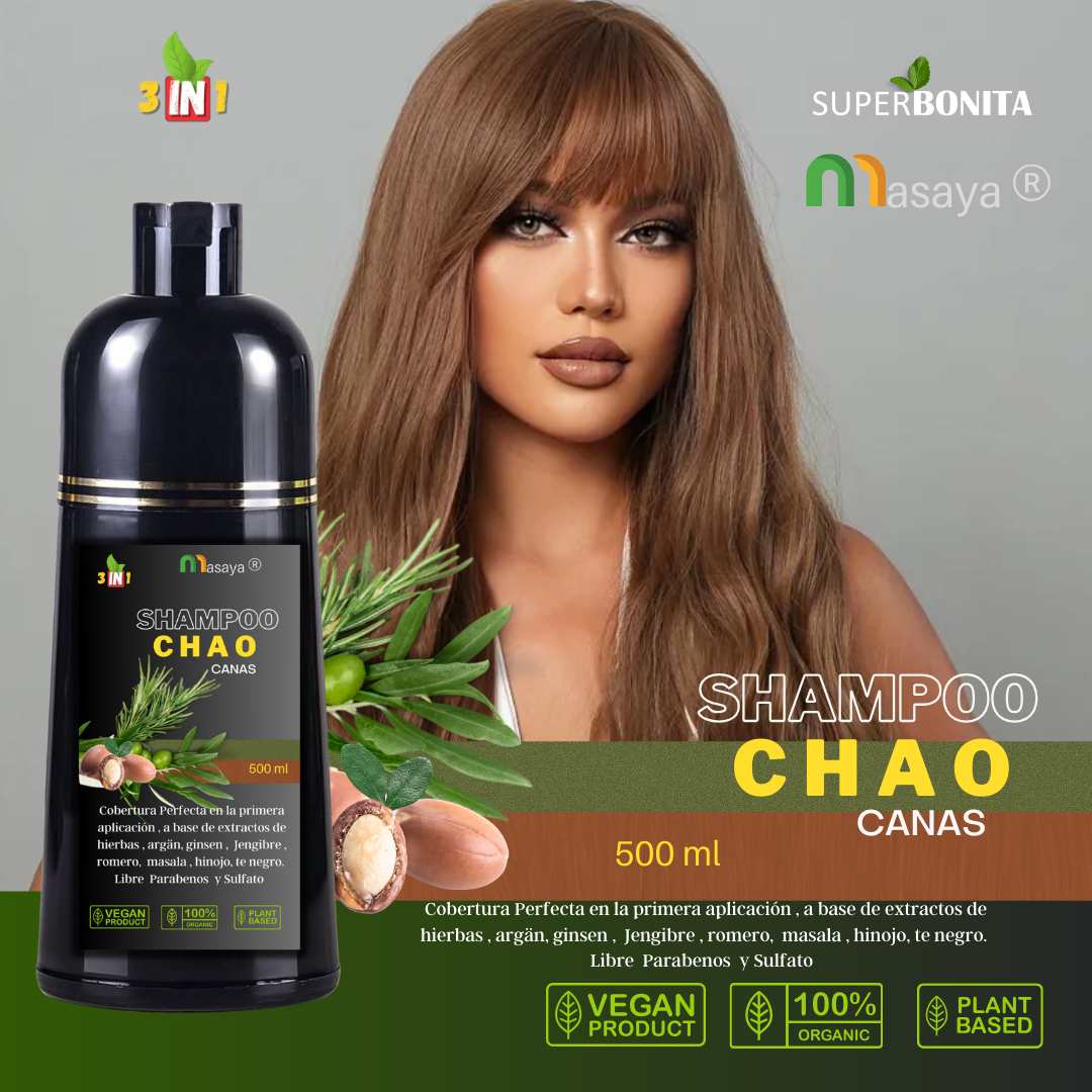 🌱 *Champú de tinte* chao cañas 3 en 1: es diferente del tinte tradicional para el cabello, sin parabenos y sin productos químicos agresivos cobertura permanente de cañas en la primera aplicación, puedes usarlo las veces que desees.