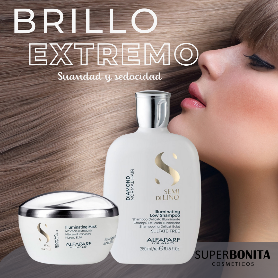 La Línea de Semi di Lino Diamond está desarrollada específicamente para revitalizar, proteger e iluminar tu cabellos. y combatir la contaminación diaria recupera una belleza extraordinaria dejándolo un 37% mas brillante. Es por eso que el la mascarilla de brillo: aporta brillo extremo. Contiene URBAN DEFENCE PRO3, Shine Fix y Color Fix Complex.