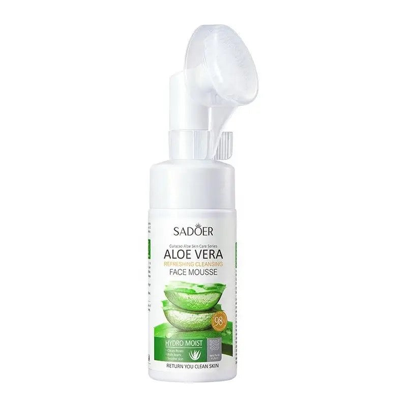 Un limpiador de espuma de gel suave fabricado con extracto de gel de aloe vera de California y libre de parabenos, talco, productos animales, aceite mineral y tintes artificiales.