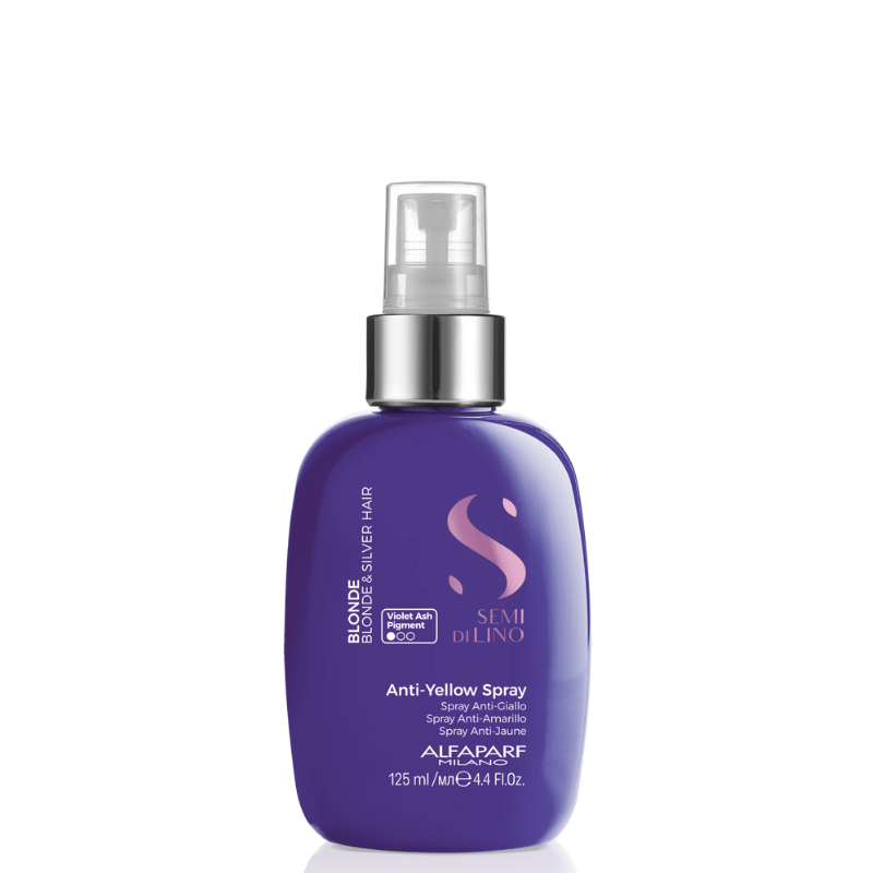 *Spray*. Anti-Yellow Spray neutraliza los reflejos amarillentos no deseados y desenreda el cabello sin apelmazarlo.