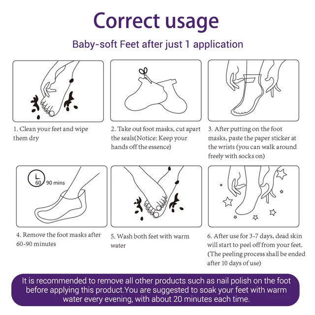 Fácil de usar: Un simple proceso de tres pasos: abrir, aplicar, y luego lavar.En menos de 15 minutos la máscara hidratante restaura tus pies para estar más saludables y más suaves..