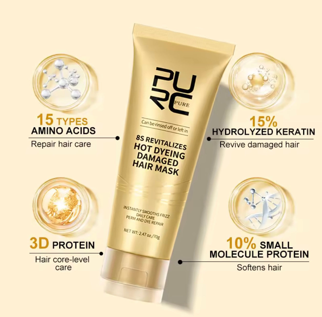 -3 Minutes to Reverse Hair Damage Caused by Bleach, Colour, Chemical Services and Heat, 70g